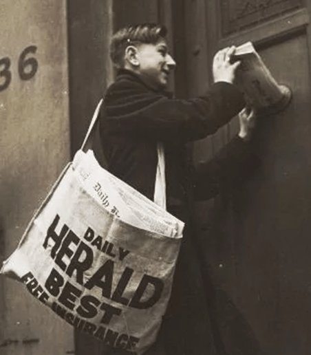 The picture below is a pretty good example of the newspaper bag I used to haul my load. You can imagine 100 newspapers was quite a burden for a 10 year old. The Sentinel supplied the bag, but new ones were hard to get. Mom had to sew holes in the bag from time to time as the newspapers wore right through it.