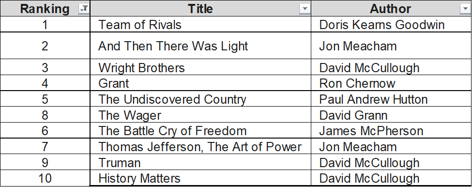 Below is a list of my Top 10 reads in 2025. As you know by now, I love to read history, particularly American History: